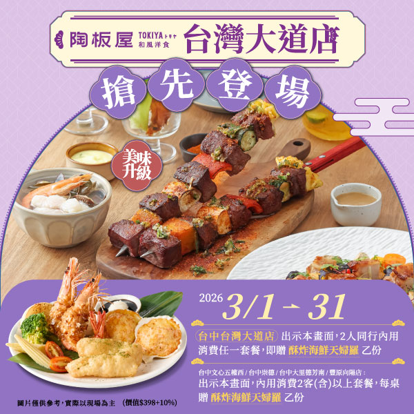 台灣大道店新菜登場 美味升級台中同慶|內用消費贈酥炸海鮮天婦羅